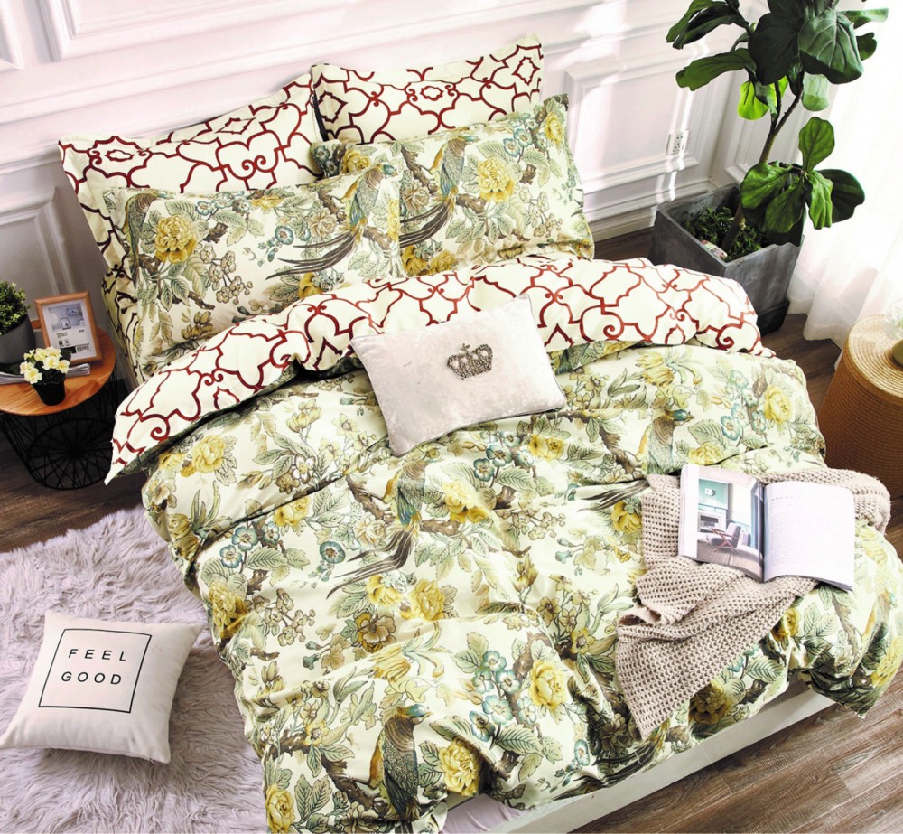 Постельное белье Сатин печатный C-302 Размер Двуспальное Оливковый 100% хлопок