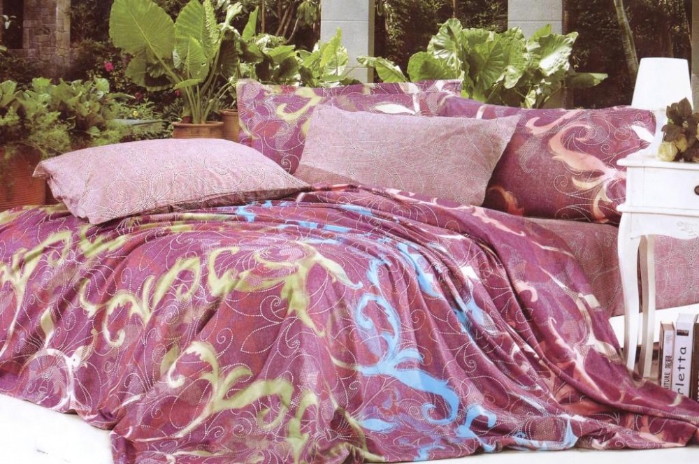 Постельное белье Сатин печатный C-137 Размер Двуспальное Фиолетовый 100% хлопок