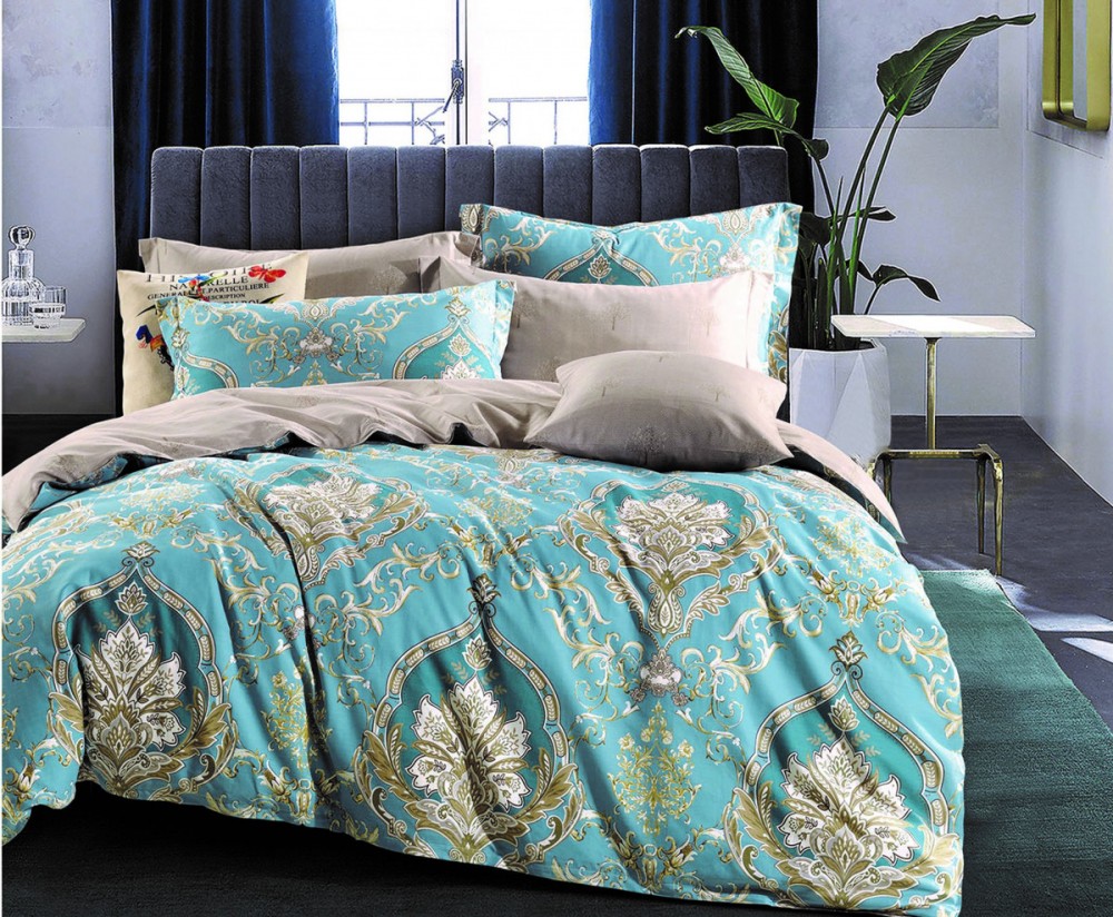 Постельное белье Сатин печатный C-303 Размер Полутороспальное Бирюзовый 100% хлопок