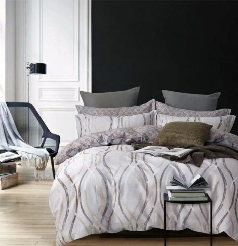 СравнитьПостельное белье Сатин печатный C-305 Размер Полутороспальное Св.серый 100% хлопок