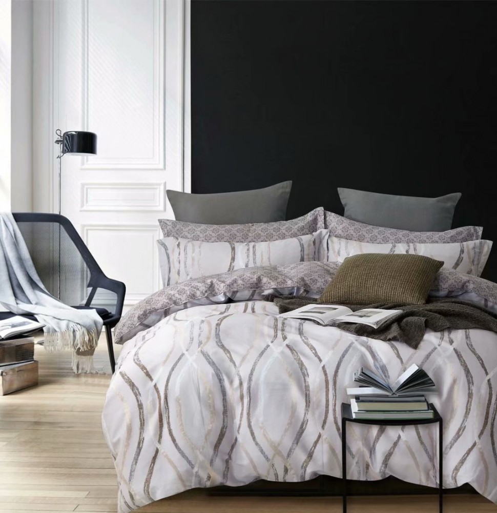 Постельное белье Сатин печатный C-305 Размер Полутороспальное Св.серый 100% хлопок