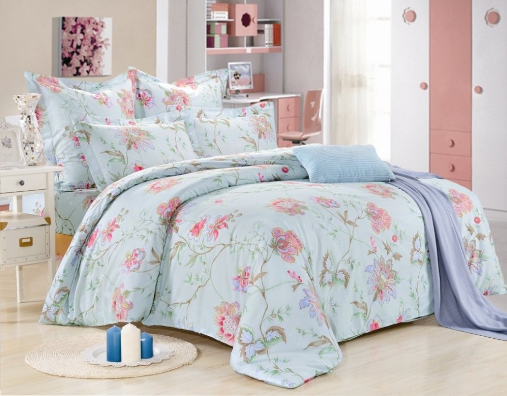 Сатин печатный CL-220 Размер Двуспальное Голубой 100% хлопок