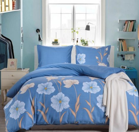 Сатин печатный CL-327 Размер Евро Синий 100% хлопок