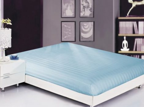 Простынь на резинке Страйп-сатин PRC-R-32 Размер 90×200 Голубой 100% хлопок