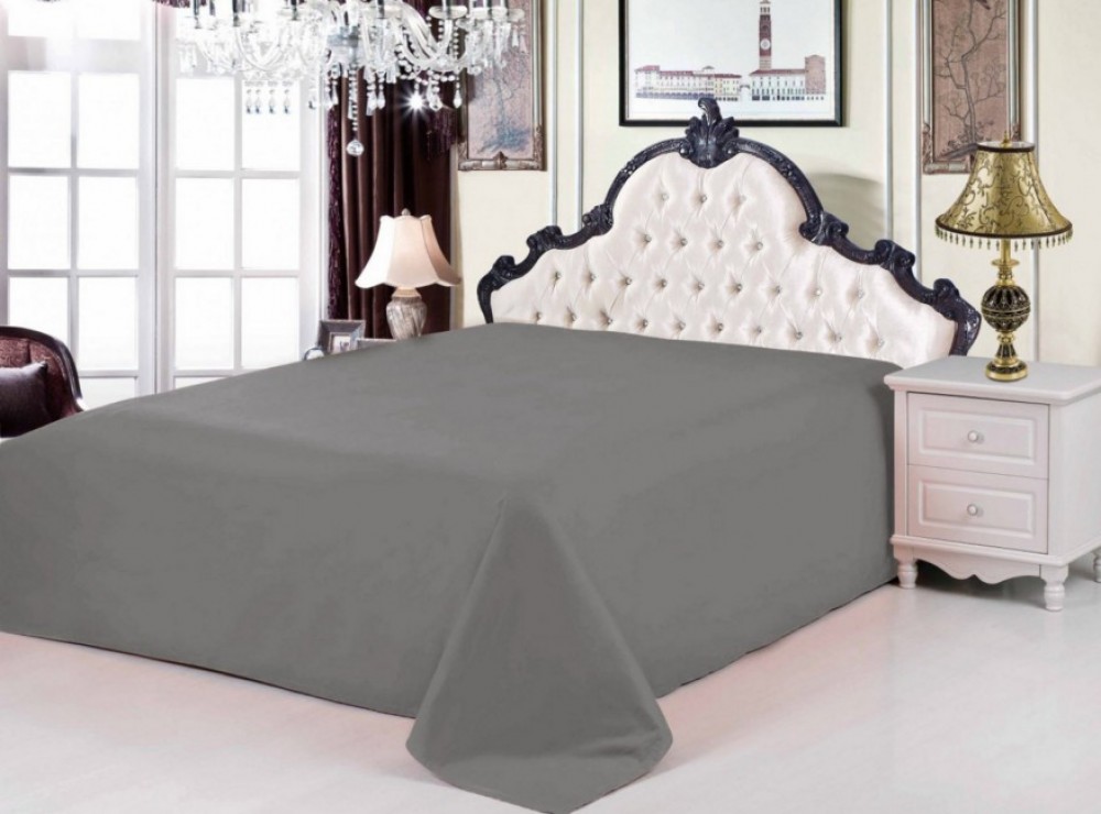 Простыни без резинки Сатин однотонные PRC-46 Размер 220×240 Серый 100% хлопок