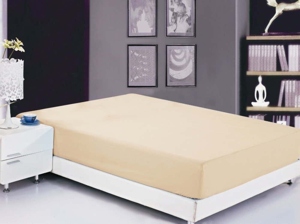 Простыни на резинке Сатин однотонные PRC-R-02 Размер 90×200 Кремовый 100% хлопок