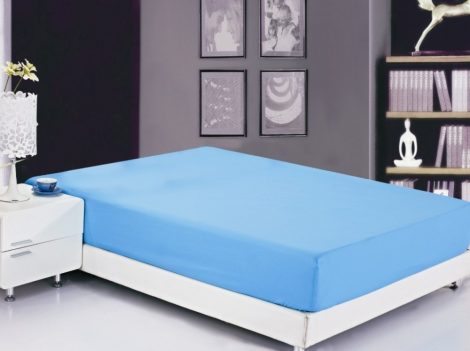 Простыни на резинке Сатин однотонные PRC-R-14 Размер 90×200 Голубой 100% хлопок