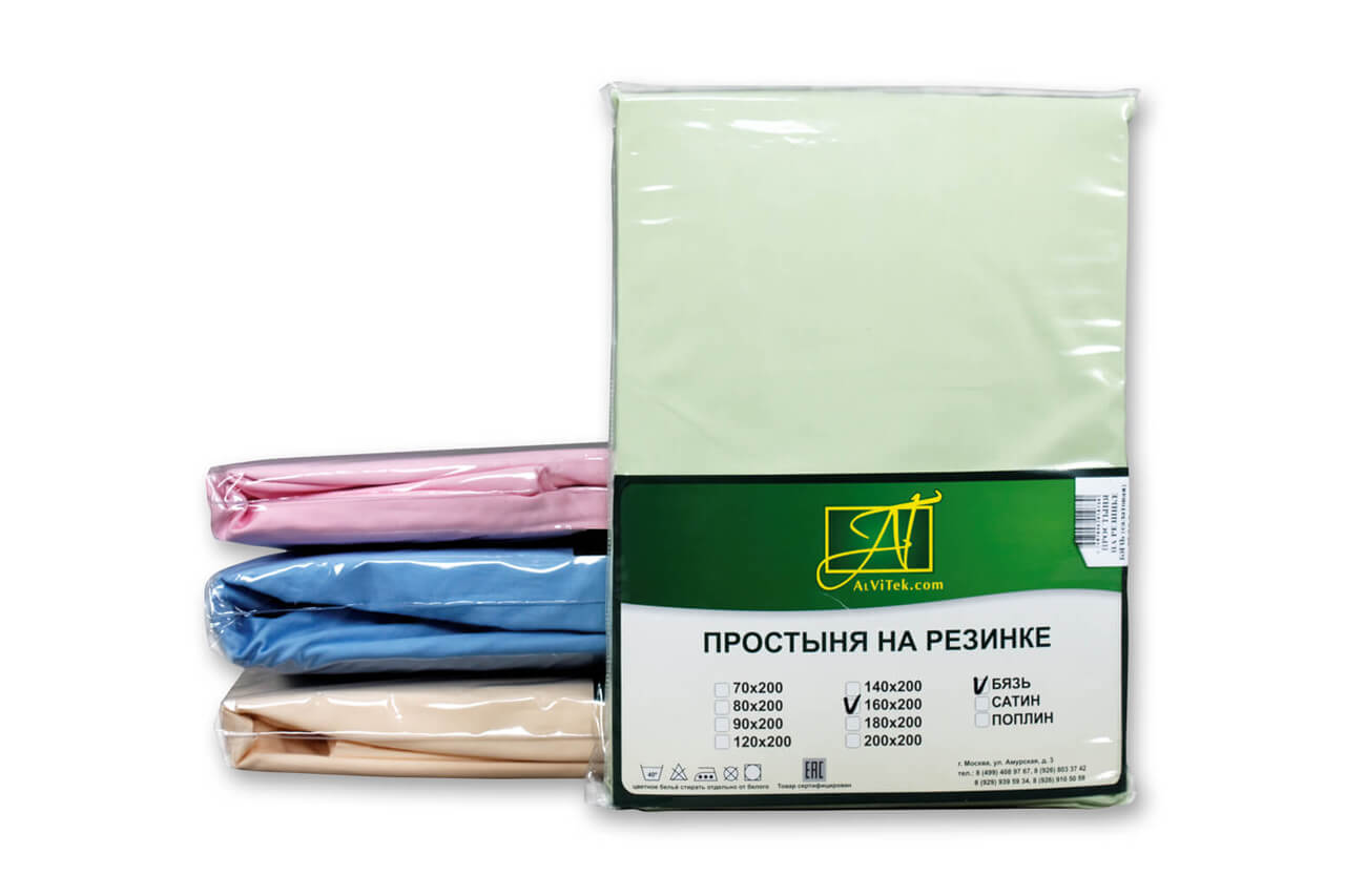 ПР-ПО-Р-090-САЛ Салатовая простыня Поплин однотонная на резинке 90х200х25