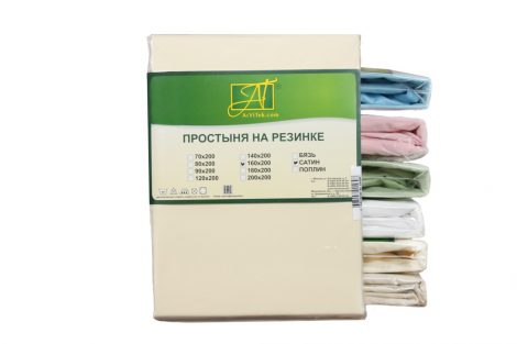 ПР-СО-Р-090-КРЕМ Кремовая простыня Сатин однотонный на резинке 90х200х25