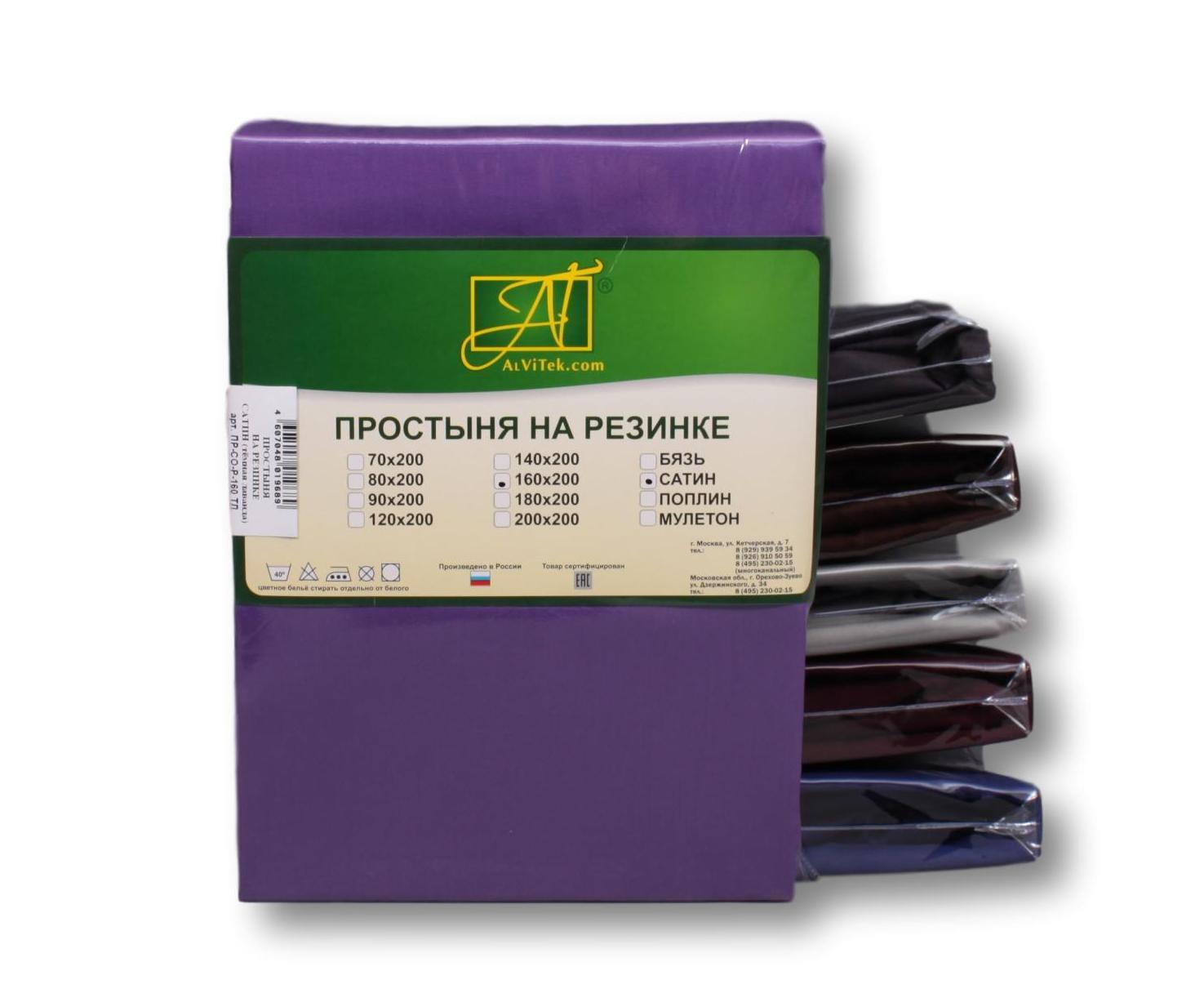 ПР-СО-Р-160-ТЛ Темная Лаванда простыня Сатин однотонный на резинке 160х200х25