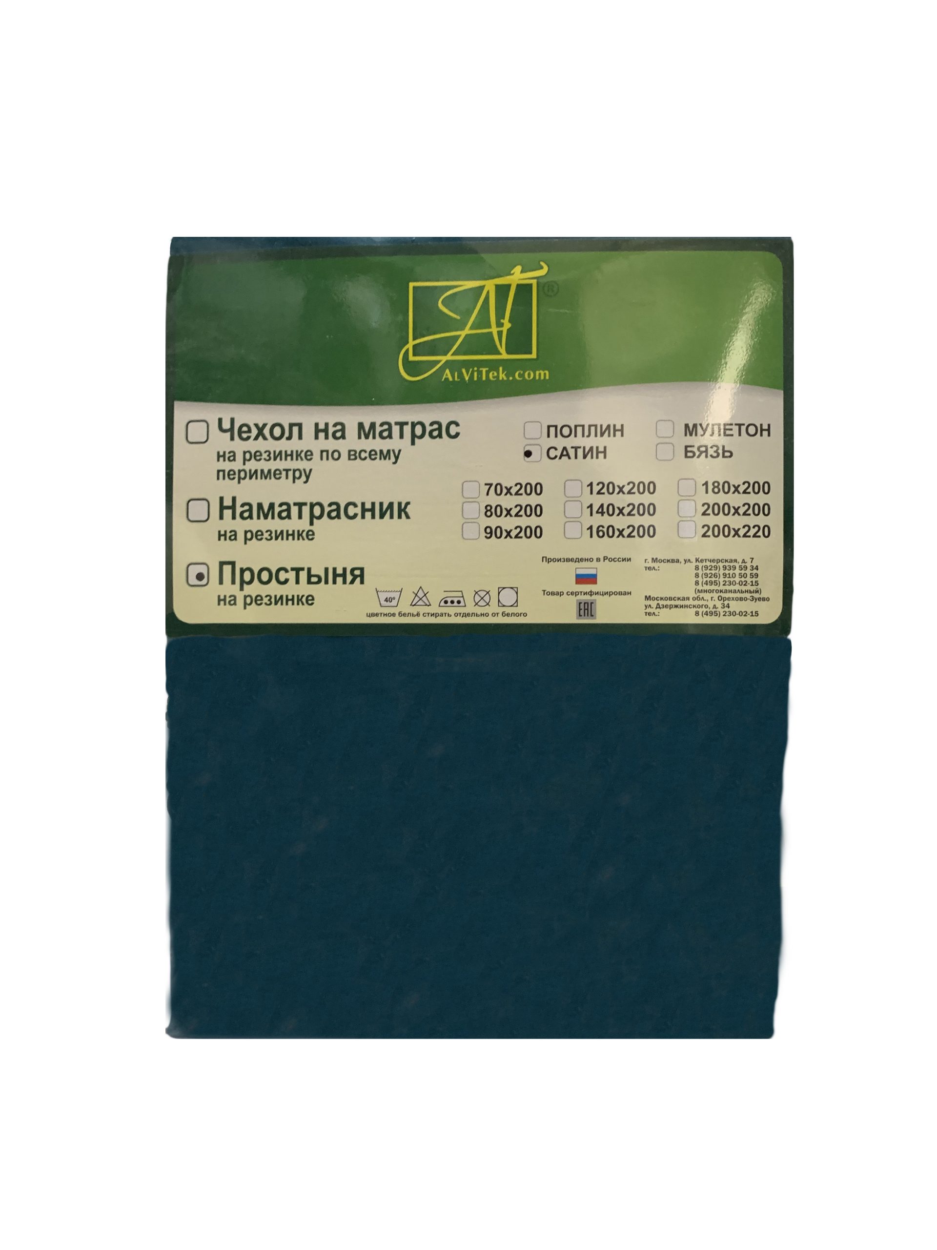 ПР-СО-Р-200-МВ Морская волна простыня Сатин однотонный на резинке 200х200х25