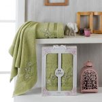10156 Фисташковый ALMIRA махра (50х90+70х140 ) Набор полотенец в коробке TWO DOLPHINS