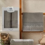 11818 Серый MARI махра (50х90+70х140 ) Набор полотенец в коробке TWO DOLPHINS